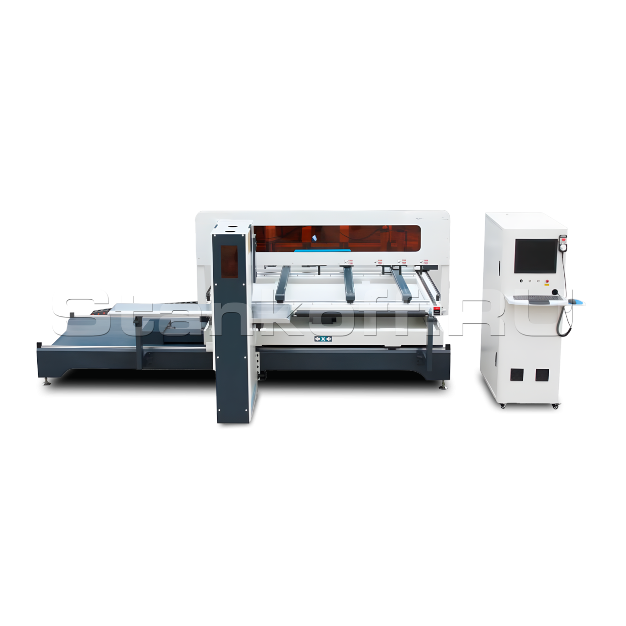 - Привод по V-оси — зубчатая рейка, двухмоторный привод;