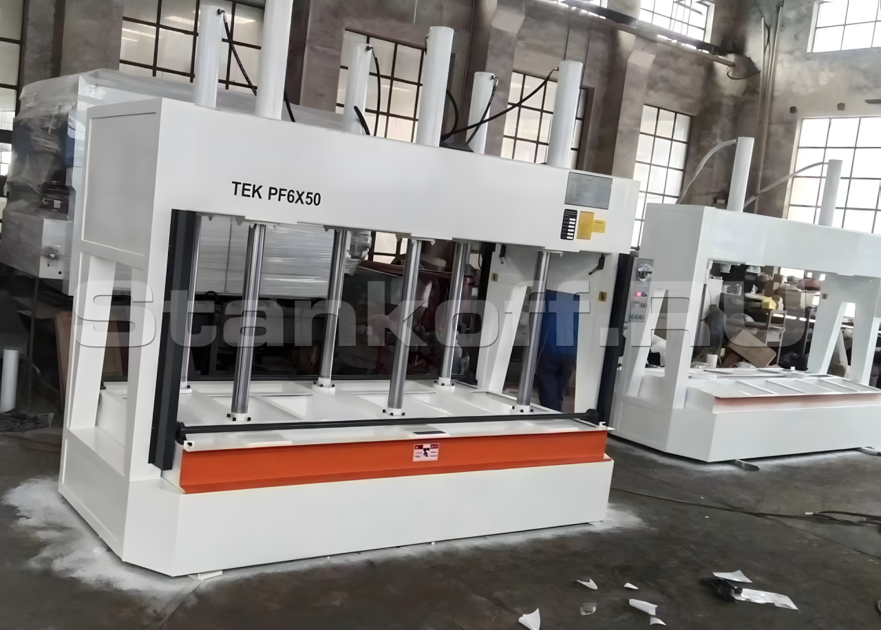 Станок холодного прессования предназначен для обработки древесных и плитных материалов, включая фанеру, МДФ, ДСП, ХДФ, мебельные и столярные щиты, а также шпонированные панели.
