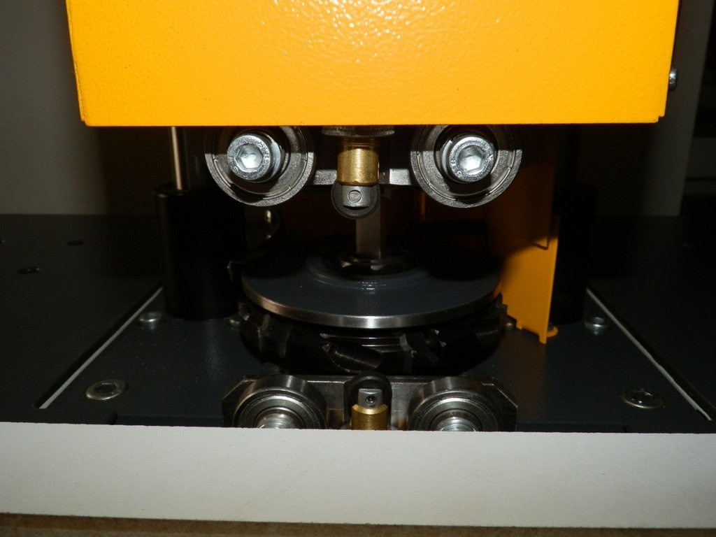 АВТОМАТИЧЕСКАЯ НАСТРОЙКА ФРЕЗЕРНОГО УЗЛА ПО ВЫСОТЕ Позволяет минимизировать время при перенастройки на разную толщину заготовки. Также осуществляет прижим заготовки |