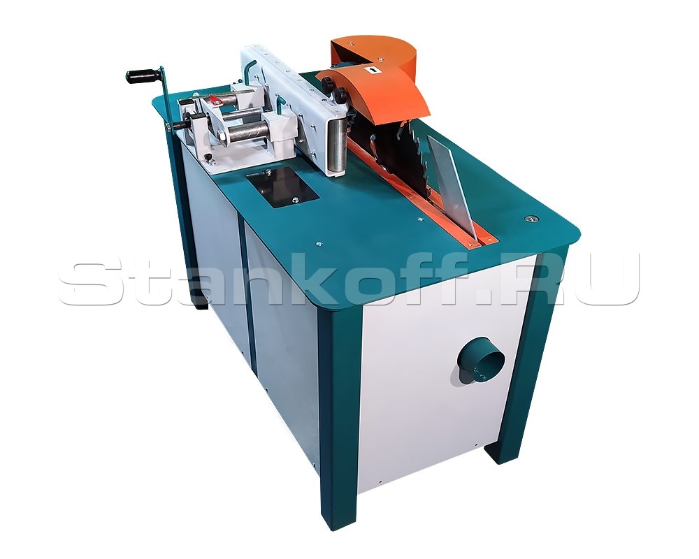 Многозадачный станок: пилит горбыль, доски, бруски, обрезки, погонаж. Расклинивающий нож защищает пильный диск от перегрева и увеличивает срок службы инструмента. Капролоновые втулки роликовой линейки не требуют обслуживания в течение всего срока эксплуатации. Подающий механизм оснащен червячным редуктором и равномерно прижимает заготовки любого размера к роликовой линейке. Три скорости подачи. Для работы можно использовать пильные диски 500-450-400-350-300 мм.