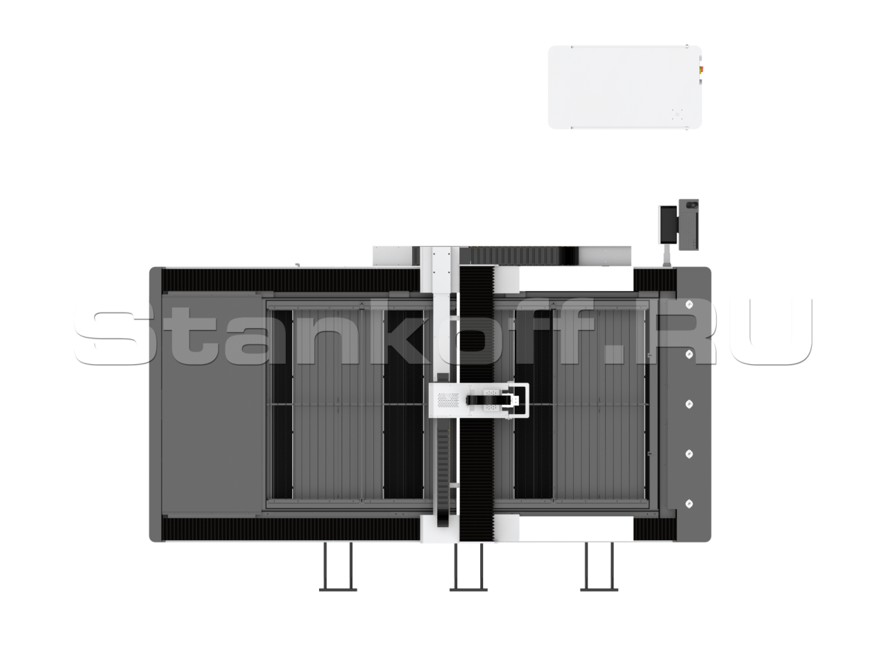 Все электрические компоненты от производителя SCHNEIDER ELECTRONIC интегрированны в стойку управления ЧПУ. Из предустановленного П.О. происходит управление лазерным комплексом, а также калибровка необходимых узлов перед запуском в работу оборудования.