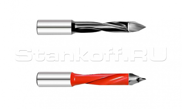 Применяется на сверлильно-присадочных станках с патронами или без для сверления сквозных отверстий в цельной древесине, её производных, пластиках и ламинированных материалах.