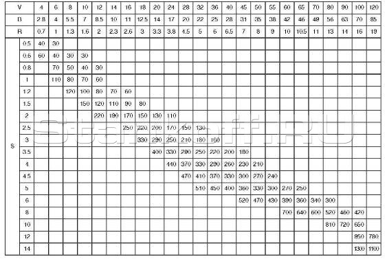 Таблица определения усилий листогибочного пресса