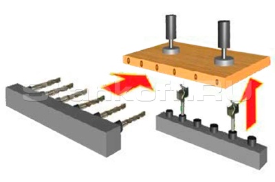 Конструкция шпиндельной головки предполагает использование сверл различной длины, диаметром от 1,5 мм до 40 мм. Возможность сверления отверстий для петель.| Количество шпинделей, шт. | 23 |