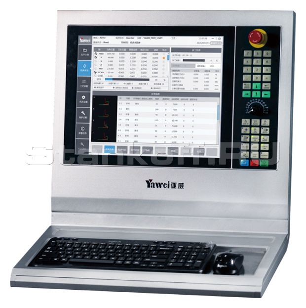 Оснащена 17-дюймовым цветным сенсорным дисплеем и имеет встроенную память, способную хранить более 20,000 программ. Поддерживается подключение USB-накопителей и 2D-моделирование процесса гибки. Оборудование автоматически рассчитывает необходимую прижимную силу, включает функцию коррекции размеров и углов гиба заготовок, а также систему функциональной диагностики. В качестве опций доступны функции автоматизированного проводного интерфейса, автономного 2D/3D-программирования и автоматической корректировки углов гибки.