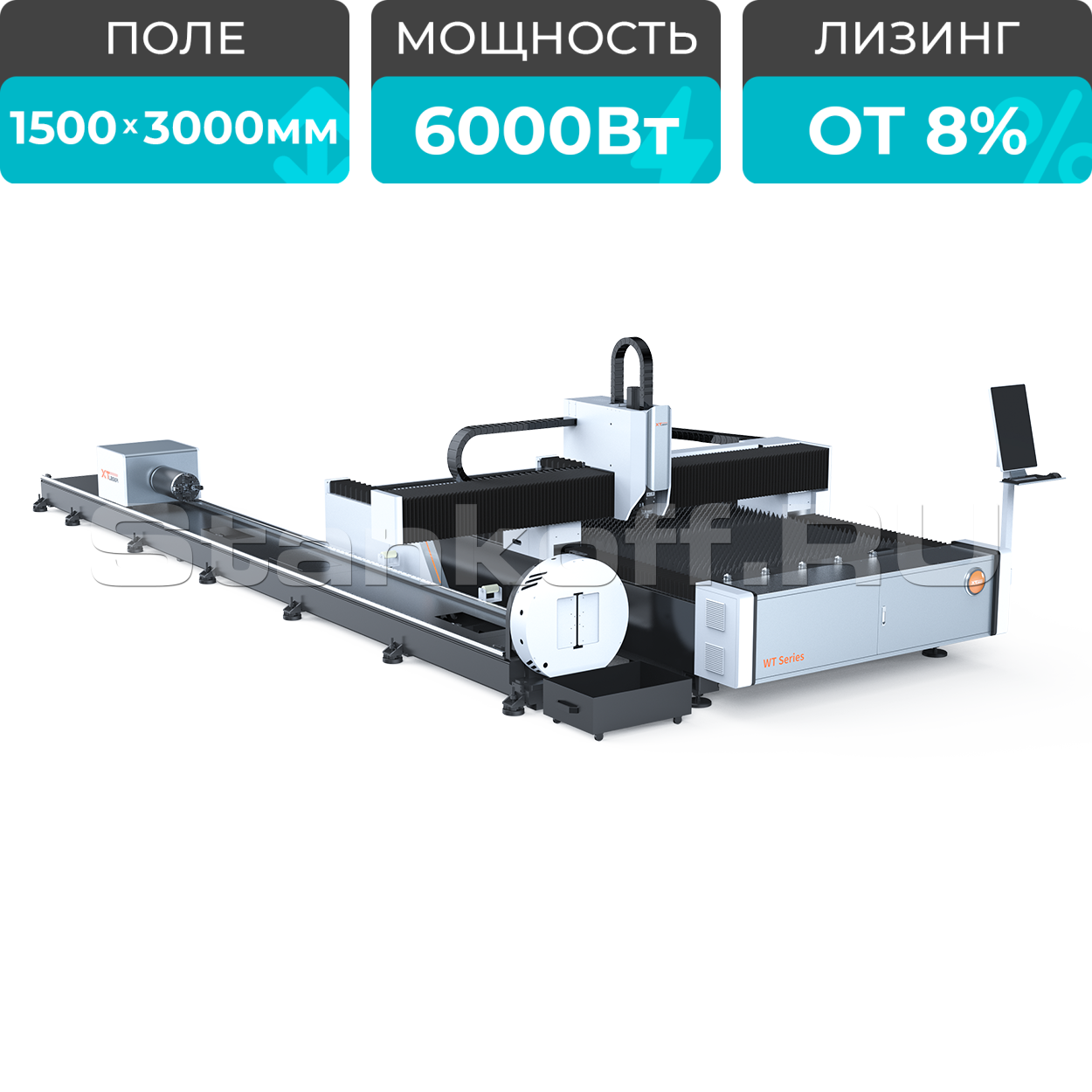 Оптоволоконный лазерный станок для резки листов и труб XTC-1530WT/6000 Raycus
