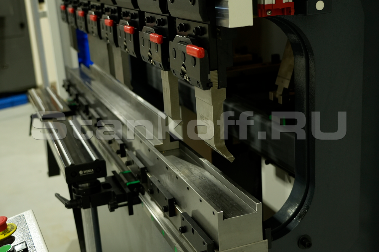 Система DSP генерирует видимую лазерную защиту, соответствующую нормам EN12622. Лазерный луч защищает оператора пресс-тормоза от опасности быть зажатым между верхним и нижним инструментом.Преимущества: